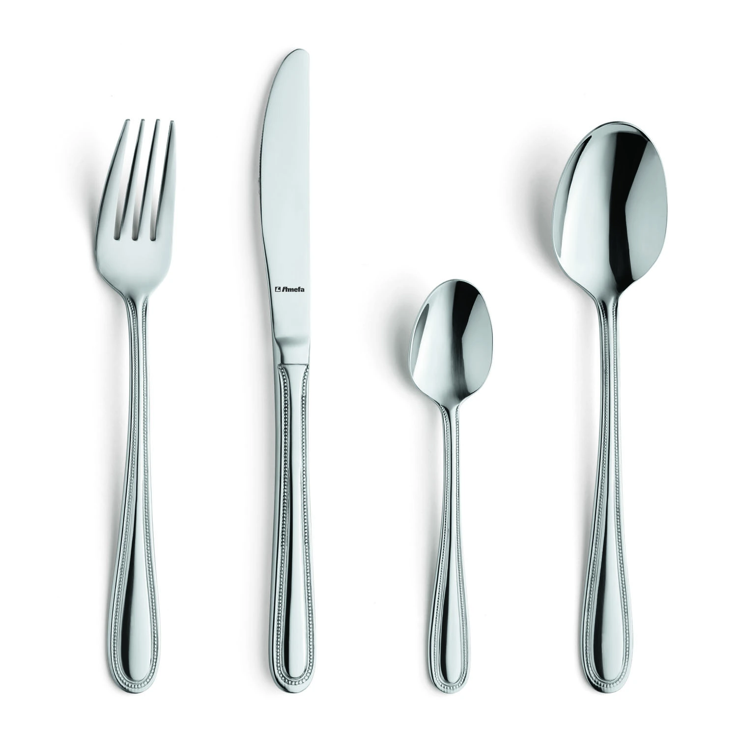 Met deze Amefa Pearl bestekset haal jij in één keer bestek voor 6 personen in huis! Het bestek heeft een klassiek model, met rondom het heft een decoratieve rand welke een rij parels vertegenwoordigd. Deze Amefa 24-delige bestekset bestaat uit de volgende onderdelen: 6 tafelmessen, 6 tafelvorken, 6 tafellepels en 6 koffielepels.